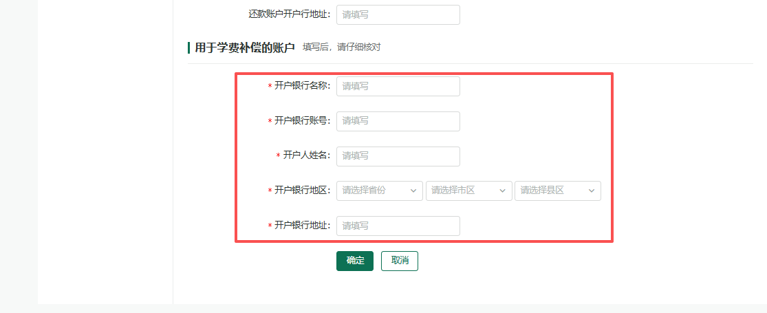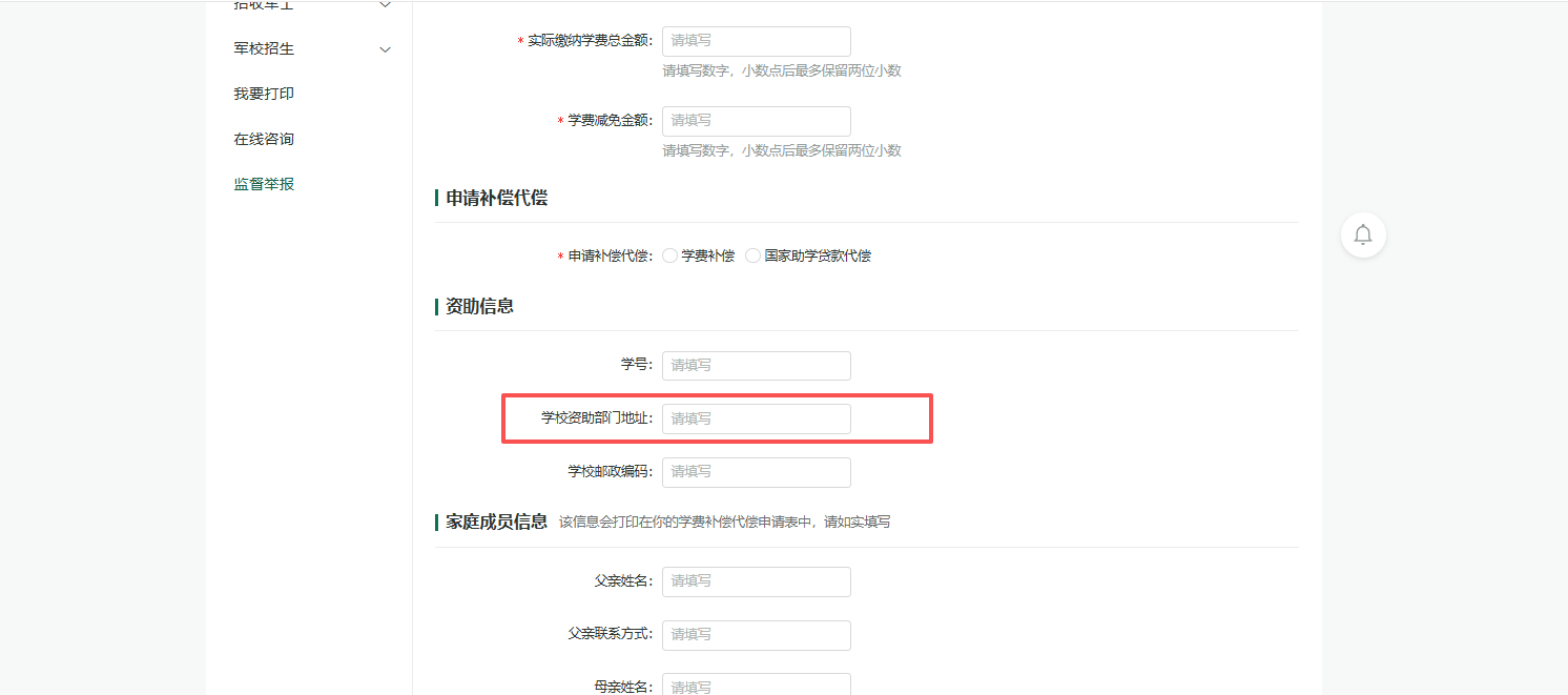 8.学费补偿和国家助学贷款代偿只能2选1,不能同时申请叠加(如:在校期间有两年办理了国家助学贷款共16000元,我校学费为5000元/年,按照实际用于学费部分进行资助,如选择国家助学贷款代偿项,则填写金额为10000+全部偿还之前产生的利息;如选择学费补偿,则填写金额为15000;不能出现填写10000+全部偿还之前产生的利息+5000此类金额数)